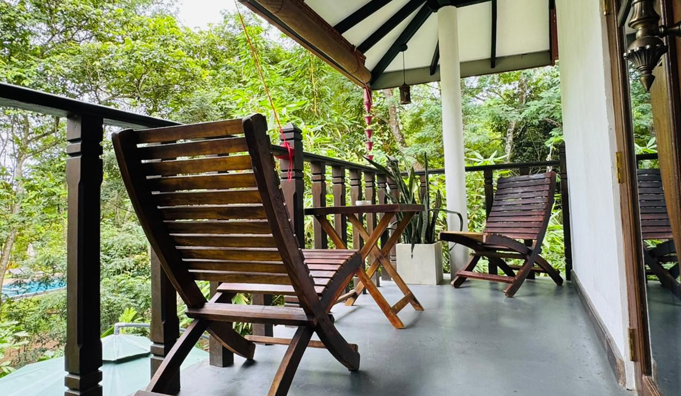 Some room features a private balcony overlooking the beautiful garden, providing a peaceful space to relax and enjoy the natural surroundings. Guests can unwind while taking in the fresh air and scenic greenery.